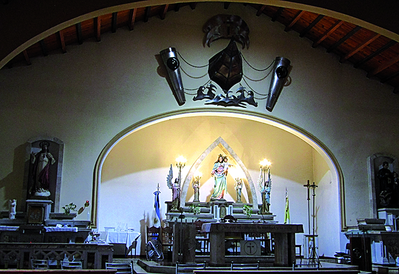 "El Padre Lona no tenía iglesia y le dije ‘Se la vamos a hacer nosotros’. Sin cobrar un centavo armamos una iglesia donde no había nada. Era una construcción vieja que tenía costillas ojivales, la elegimos por eso. Nunca trascendió, nadie se da cuenta el valor que tiene. Es una obra humilde pero de mucho valor", cuenta Leonor Rigau de Carrieri, entonces al frente de Tornambé (UNSJ), que tomó este trabajo junto a las entonces jóvenes profesionales Eneida Roso, Ana María Zibarelli, Cristina Camenforte y Estela Milán. Fue en los ’80 y llevó varios meses.