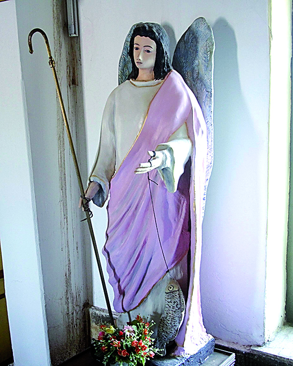 Analía Russo también restauró el arcángel Rafael, que todavía se exhibe en la Capilla San Nicolás de Tolentino (Albardón), que es patrimonio arquitectónico-cultural, comentó, ya que es una capilla muy antigua. Fue convocada por una arquitecta hace unos 5 o 6 años. "Estaba muy dañado, así que prácticamente fue a nuevo. Nos guiamos por fotos".