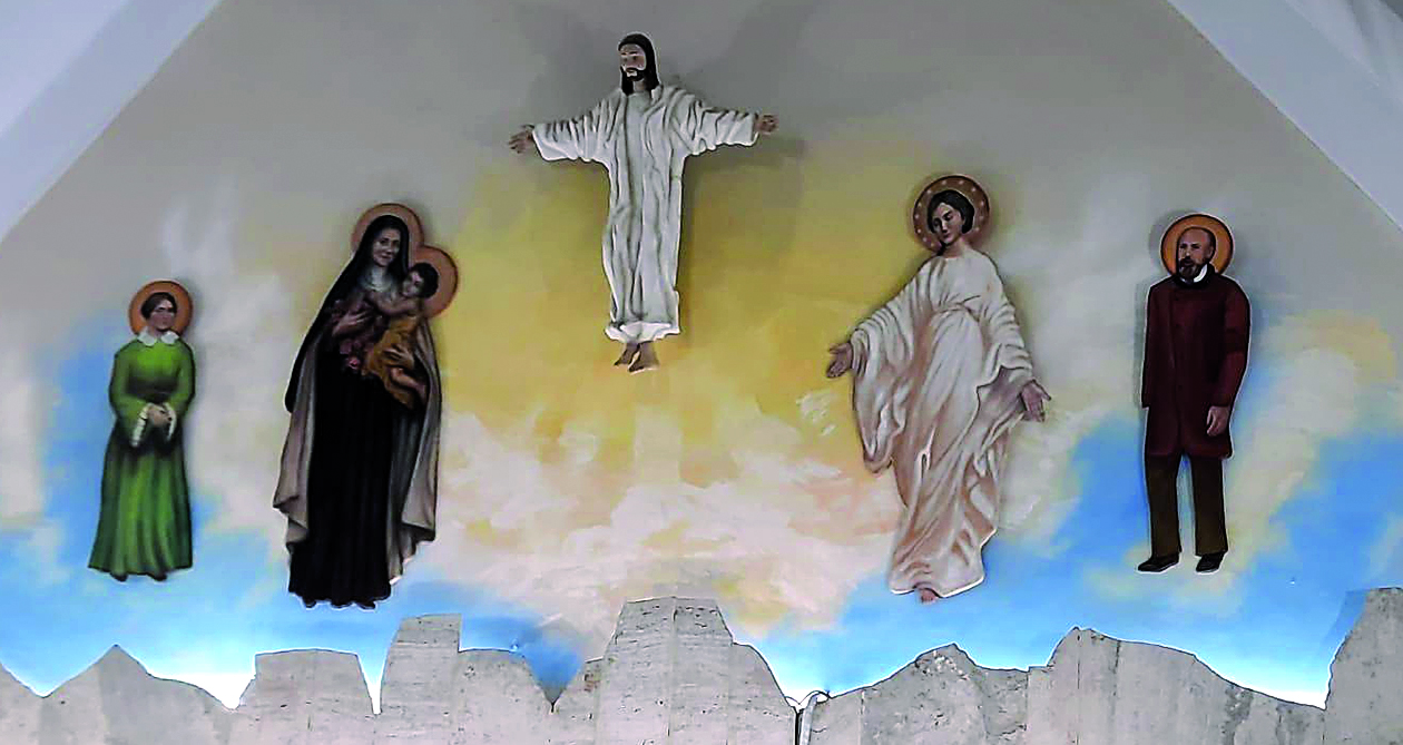 En octubre de 2020 esa obra, a la que bautizó "El milagro del sol", cumplió 10 años ante los ojos de los feligreses. Tal como se publicó en DIARIO DE CUYO para ese aniversario, "la campiña con sus animales, el pueblo, el anuncio del ángel a los pastorcitos (con sus rosarios en las manos), la aparición de la Virgen, la cruz despojada y el Jesús resucitado de brazos abiertos para recibir a su rebaño, la multiplicación de los panes y de los peces (algunos tallados en la madera y otros conjugando un móvil que, con luz, parecen nadar dentro del río), el cáliz con el cuerpo de Cristo, el paraíso… todo está presente, con esmerado detalle, en esta composición que se conjuga también (y tan bien) con la naturaleza, porque sus zonas vidriadas juegan con las luces del día y la noche".