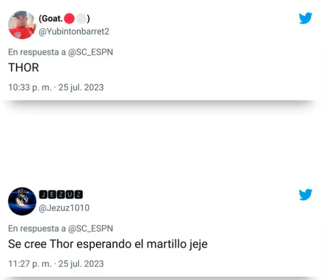 “Claro, Thormessi el Dios del fútbol”, afirmó un fanático en su cuenta de Twitter. “Se cree Thor esperando el martillo jeje”, aseguró otro, mientras que un tercero se sumó a esa teoría: “Es Thor”.
