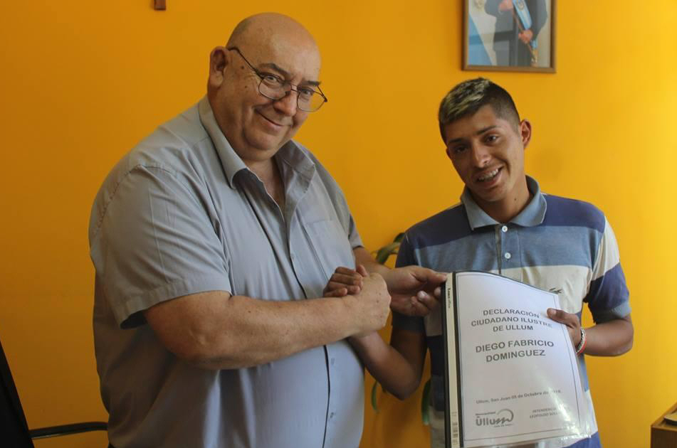 El viernes, el intendente de Ullum Leopoldo Soler nombró a Fabricio Ciudadano Ilustre del departamento (foto), por haber salvado a la beba de su vecina. El chico fue felicitado por todos. Los interesados en ayudar a la familia que perdió todo el incendio pueden comunicarse al 2644757793.