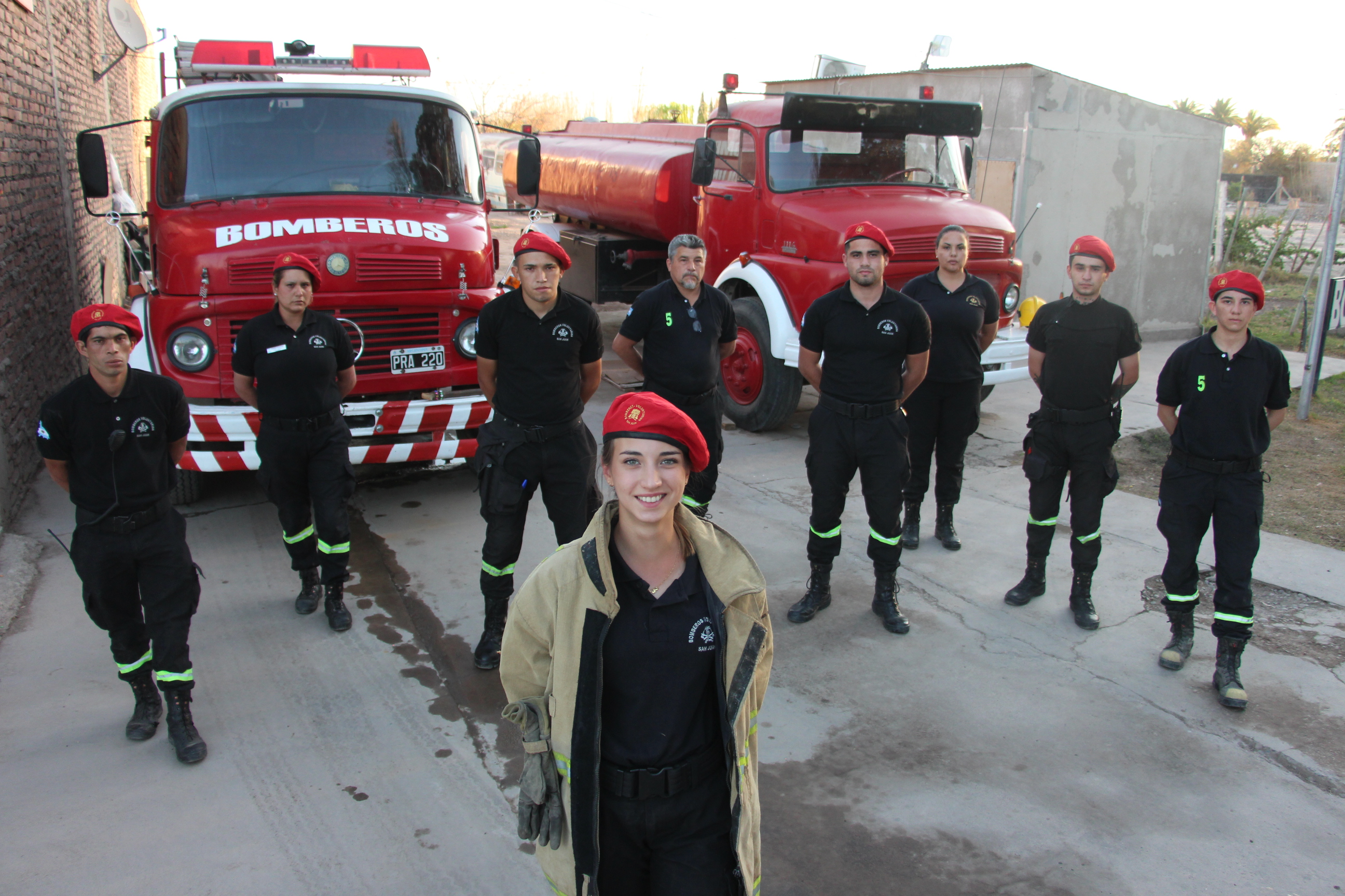 Hay equipo. Melanie junto a sus compañeros. En el Cuartel de Bomberos Voluntarios de Santa Lucía dijeron que funcionan como una familia.