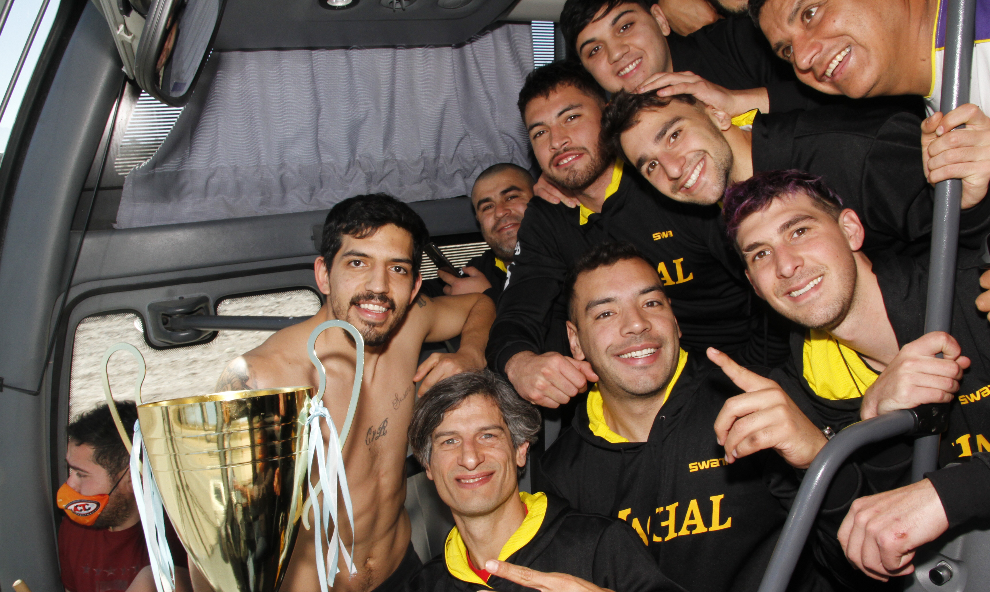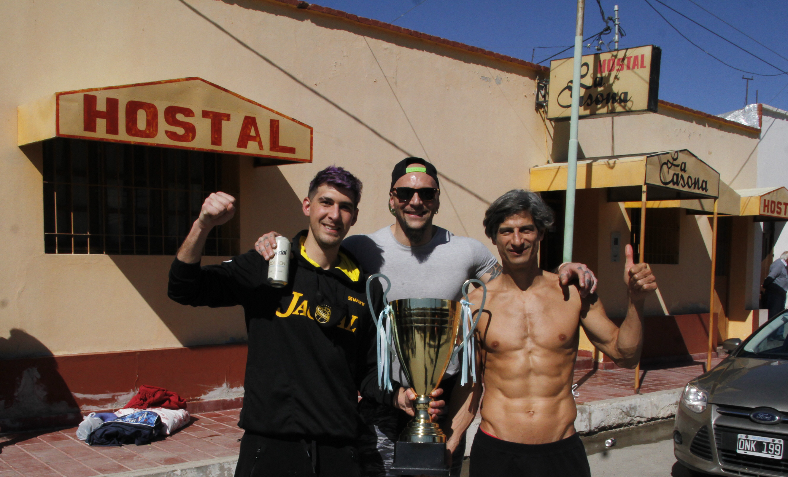 La caravana de los campeones culminó su recorrido en "La Casona", un hostel ubicado a unas pocas cuadras de la plaza departamental, lugar que alojó a casi todo el plantel. En ese lugar montaron un gimnasio para entrenar cuando los aquejó el brote de covid hace poco más de un mes.