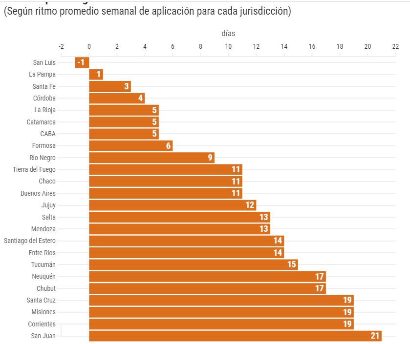 De esta manera y según ritmo promedio semanal de aplicación para cada jurisdicción, a San Juan le queda stock de vacunas como para 21 días, y se ubica como una de las provincias que más lento vacuna.
