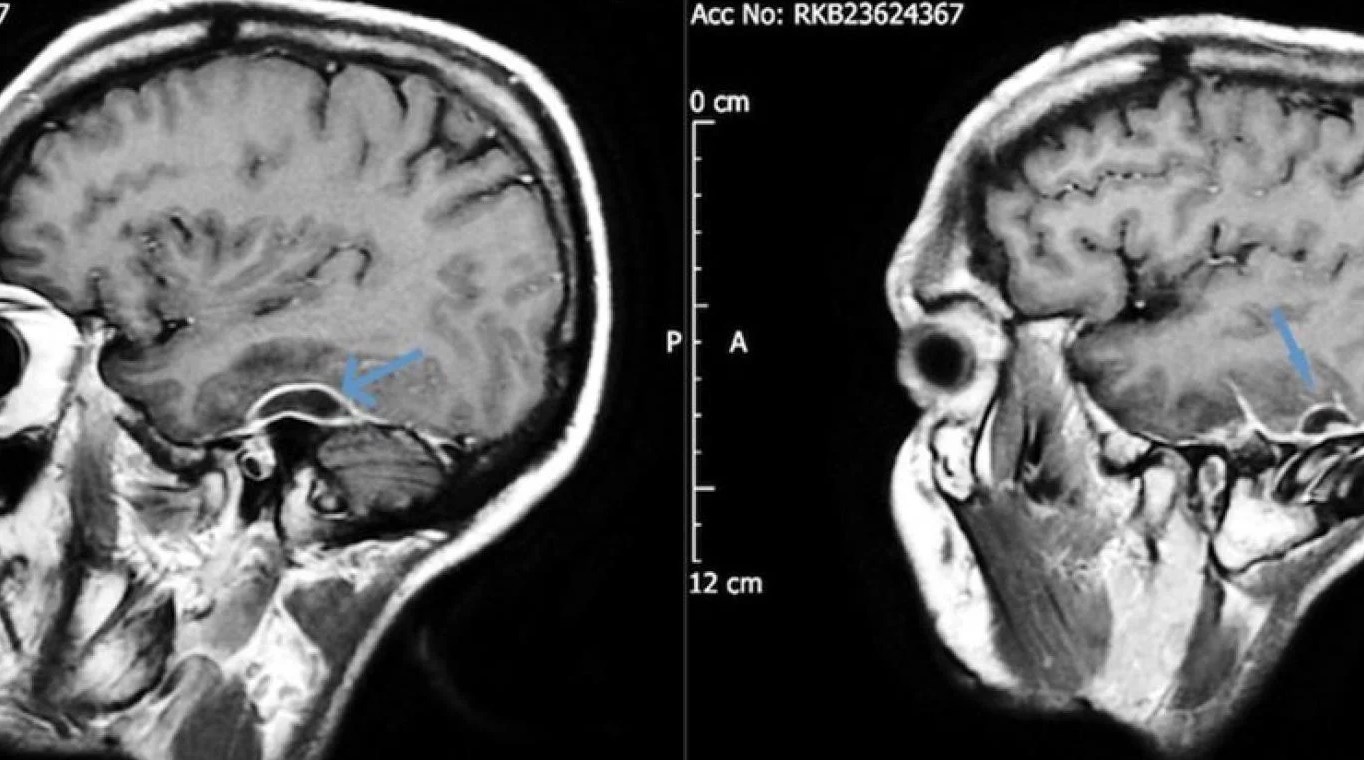 El paciente presentó convulsiones y estuvo a punto de colapsar. Los primeros exámenes que le realizaron, mostraron que el presentaba adormecimiento, desorientación y un estado alterado de conciencia. Le contó a los médicos que días antes tuvo dolores de cabeza, así como dificultad para recordar nombres. Dijo, además, que durante los últimos cinco años padeció un interminable dolor en el oído izquierdo y que poco a poco estaba perdiendo la audición.