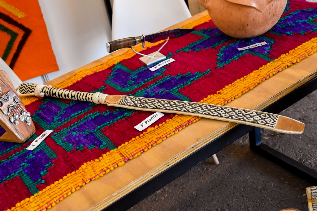Por último, el quinto puesto se otorgó a un camino de mesa, realizado por la artesana Clara Quiroga, de Albardón. Fue un trabajo en lana natural hilada a mano, tejido en telar criollo con técnicas tradicionales de cinco lizos y de tramas discontinuas que conforman motivos geométricos en forma de flor federal.