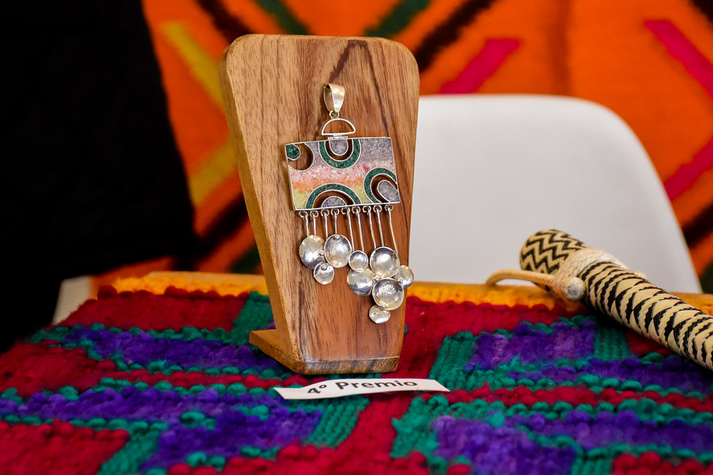 El cuarto lugar fue para un dije de plata y piedras reconstituidas, realizado por los artesanos Maia Muchardi y Marcelo Ferreira, de Villa Gral. Belgrano de Córdoba, con técnicas de orfebrería tradicional.