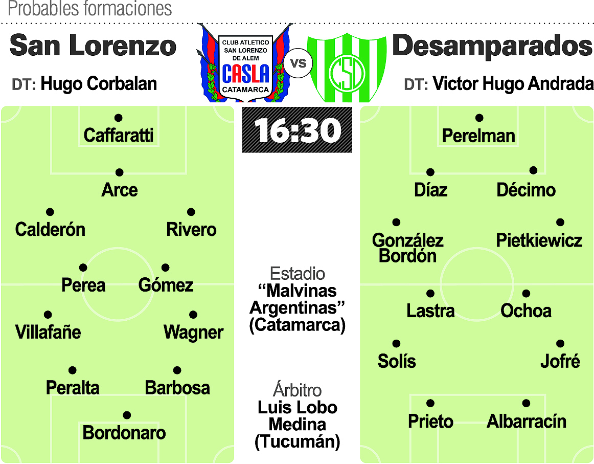Se terminó la espera. Después de cinco meses de inactividad en el Federal "A", Sportivo Desamparados debutará hoy en la temporada 2018-2019 cuando visite a San Lorenzo de Alem en el comienzo de la Zona 3 del certamen. El encuentro se disputará desde las 16.30 horas en el Estadio "Malvinas Argentinas" y con el arbitraje del tucumano Luis Lobo Medina.