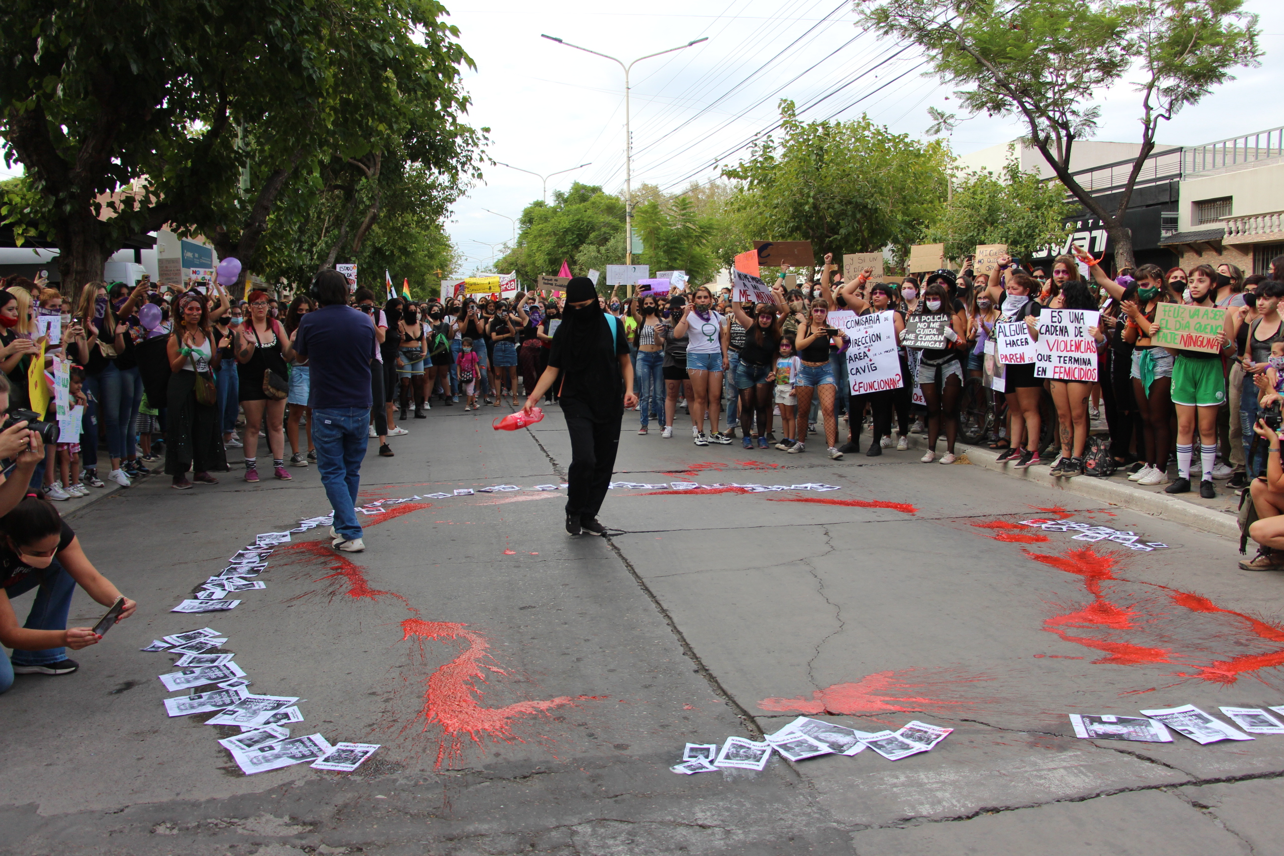 Con barbijo e intentando mantener la distancia social, la marcha avanzó hasta llegar al Centro de Abordaje de Violencia Intrafamiliar y de Género (CAVIG) donde los cánticos contra la violencia "machista" y el sistema "patriarcal" no cesó y realizaron una intervención que quedó sobre avenida Alem.