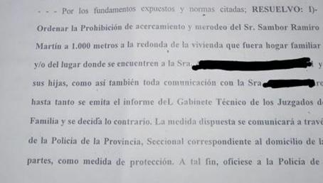La primera denuncia que le hizo Andrea fue en 2018 y la Justicia resolvió cuota alimentaria y una perimetral para no acrecarse de 1.000 metros a la redonda, según la resolución firmada por la entonces jueza de Familia María Estela Tejada.
