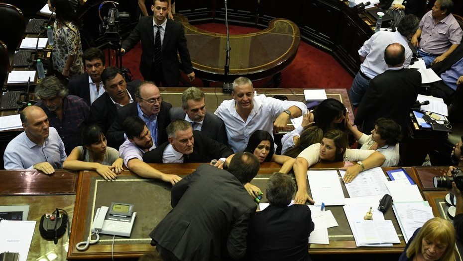 Para los legisladores, los hechos de violencia que produjo el kirchnerismo en la sesión donde se debatía la reforma previsional “podrían encuadrar en la acción típica descripta por el artículo 241 de nuestro Código Penal, puesto que quienes los llevaron a cabo habrían perturbado el ‘orden en las sesiones de los cuerpos legislativos nacionales o provinciales’, al impedir a través de la violencia que el Congreso Nacional pueda funcionar normalmente”. También, podrían haber delitos de “intimidación pública prevista en el artículo 211”, al haber producido agresiones “para infundir un temor público o suscitar tumultos o desorden”, concluyeron los diputados en su presentación ante la Justicia.