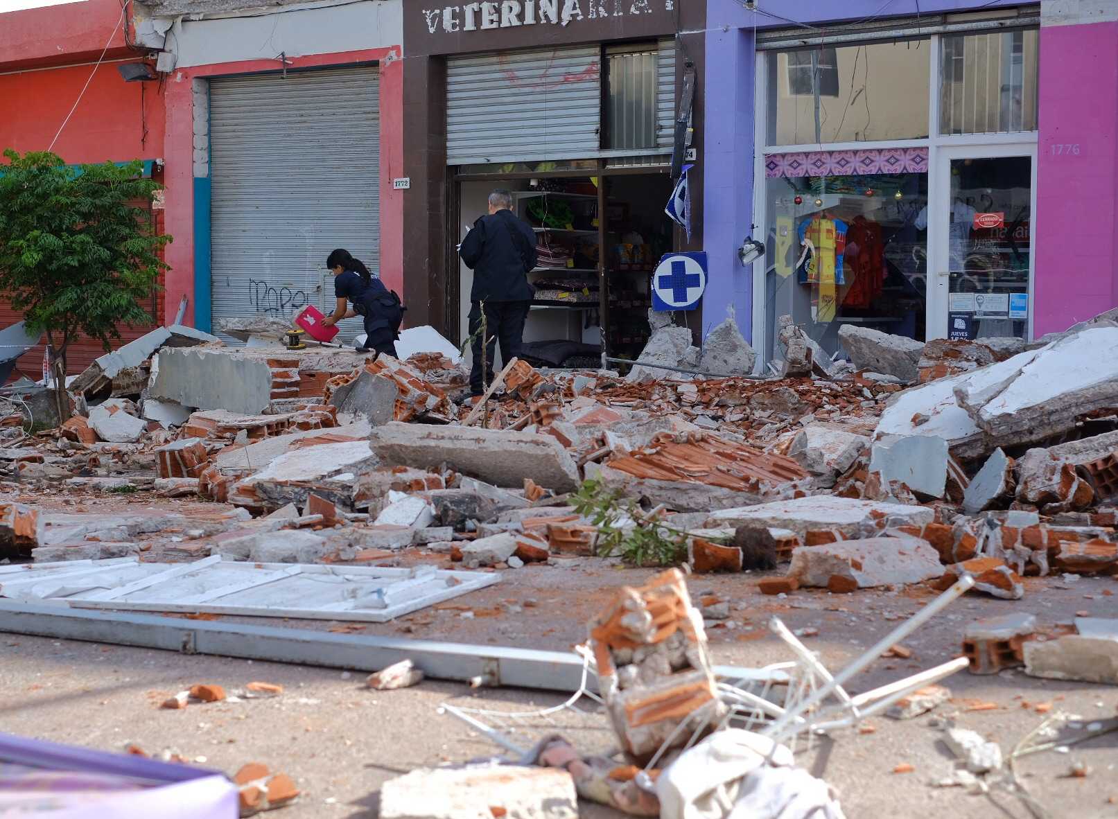 En Acevedo y Puán se desmoronó la pared de protección de la terraza de un edificio de dos pisos y arrastró toda la línea de balcones. Debajo de los escombros, murieron aplastadas la mujer y su hija. Estaban con el resto de la familia, el padre y otra nena de entre 8 y 10 años, tomando algo en un bar enfrente. Cruzaron para ver la vidriera del local de ropa y la estructura se les desmoronó encima.