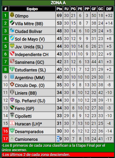 Si el Víbora le gana a Liniers llegará a los 33 puntos, y si Huracán empata o pierde ante Sansinena, Sportivo lo habrá superado por lo tanto habrá salido de la zona de descenso directo llegando a la última fecha con la ilusión intacta. De empatar en Bahía, Sportivo llegará a los 31 y deberá esperar el resultado entre Camioneros ante Otamendi. Tras perder con Sportivo Otamendi necesita ganar para seguir con chances de meterse en zona de clasificación. Desamparados empatando, deberá esperar que Camioneros pierda (29) o empate (30), además que Huracán pierda, en ese caso, puyutanos y mendocinos habrán llegado a los 31 pero por diferencia de gol Sportivo seguirá en descenso pero todavía con chances en la última fecha.