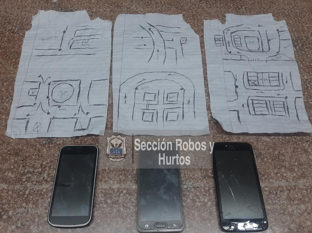 En los lugares donde se realizó el operativo policial, también hallaron papeles con croquis dibujados de cómo debían manejarse en la zona para efectuar los robos.