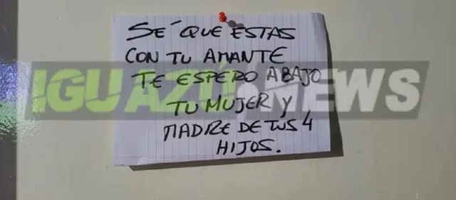“Sé que estás con tu amante, te espero abajo. Tu mujer y madre de tus 4 hijos”, le escribió en un papel que luego pegó en la puerta de la habitación y se sentó en lobby a esperarlo.