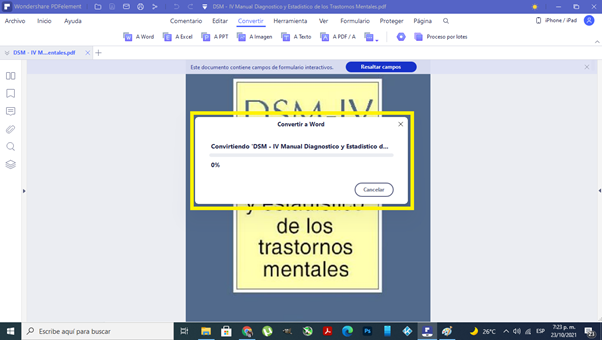 Paso 2-. Seleccionar la opción “convertir “y elegir “a Word” para comenzar a convertir.