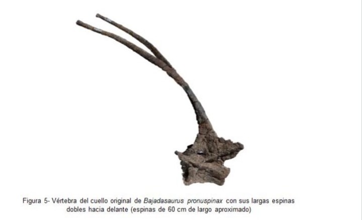Lo que encontraron básicamente es una nueva especie de dinosaurio. Fue nombrado como Bajadasaurus pronuspinax. El nombre propuesto hace alusión a sus diferentes características: Bajada, en relación a la localidad de hallazgo, Bajada Colorada; saurus, en griego significa “lagarto”; pronus, en latín significa “inclinado hacia adelante”; spinax, en griego significa “espina”. El nombre en castellano sería entonces “lagarto de bajada con las espinas hacia adelante".