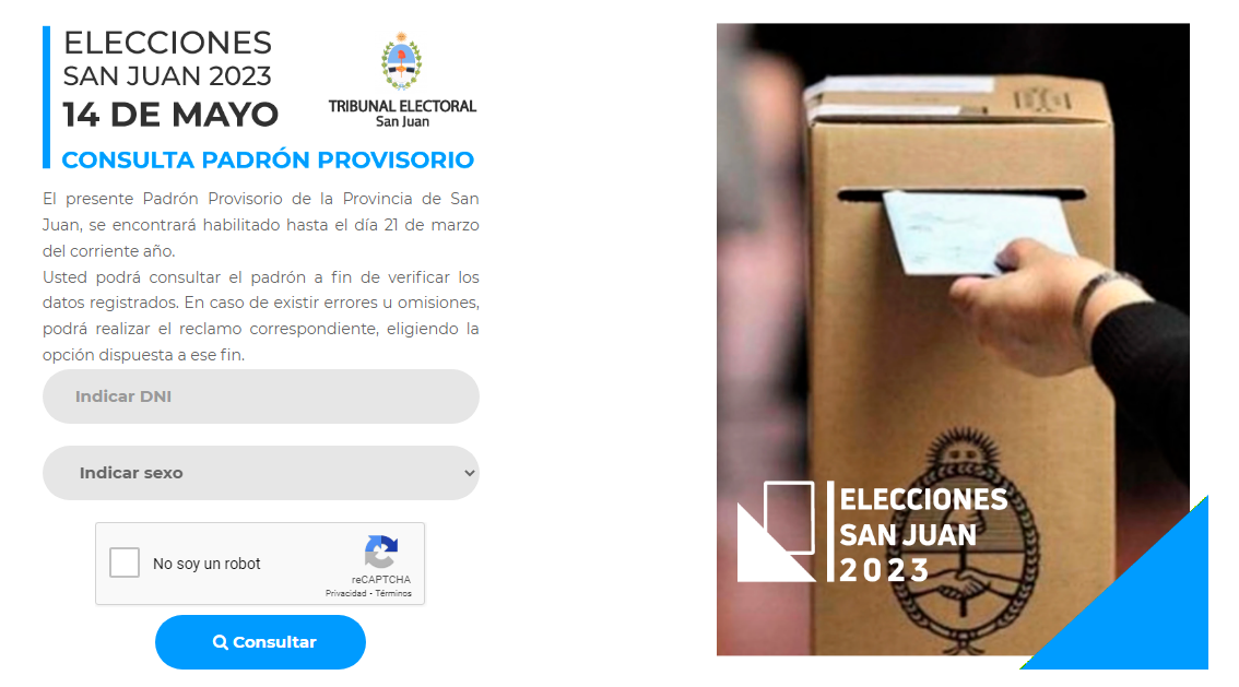 El Tribunal Electoral de la provincia comunicó que a partir de mañana viernes, justo un mes antes de las elecciones del próximo 14 de mayo, los sanjuaninos podrán comenzar a consultar el padrón definitivo para saber dónde votarán.