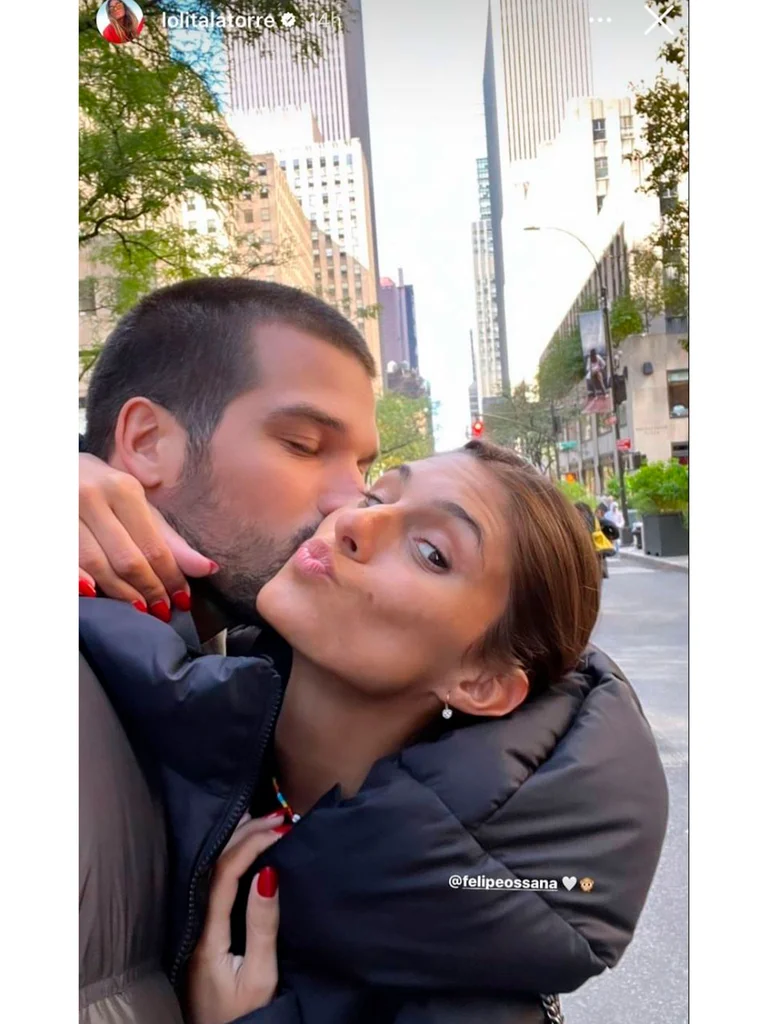 Después publicó una selfie donde él le está dando un beso en la mejilla, muy pegados y enamorados. Y ya en pleno “blanqueo”, Lola también republicó una story de él, en donde se los ve caminando de la mano por la ciudad. La pareja se quedará lo que resta de la semana en Nueva York, disfrutando de sus primeros pasos como novios.