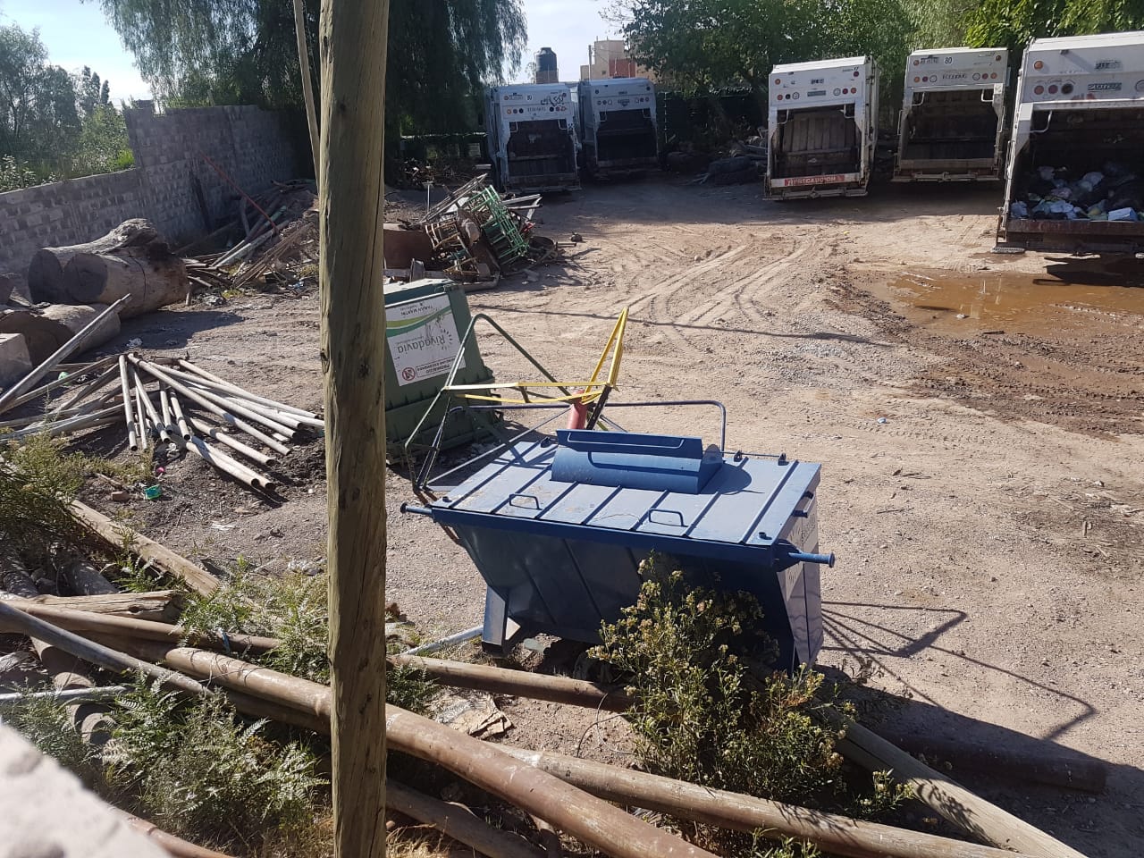 Desde comienzos de 2016 se instaló en calle Meglioli 1428 Sur el Obrador Municipal de Rivadavia. Un espacio que, antiguamente, estaba destinado al vivero del departamento y contaba con una pequeña oficina técnica. No hubo ningún inconveniente hasta el momento en que se decidió darle una nueva función: depósito de camiones recolectores de residuos domiciliarios.