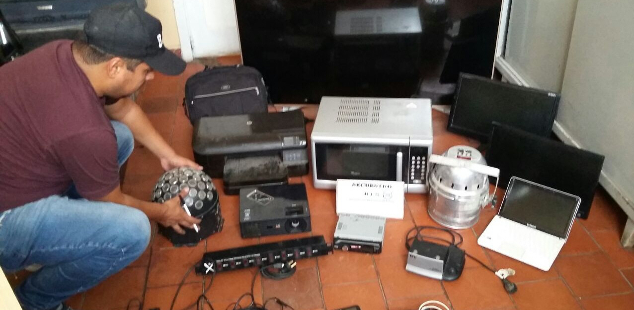 Dos sujetos identificados como Ramiro Ramírez alias ‘Gitano’ y el ‘Alicate’ Arias, fueron detenidos en Villa Las Rosas, Rawson, por policías de la Brigada Sur que dirigen el subcomisario González y el oficial Llanos. Tenían en su poder un televisor de 55 pulgadas, los electrodomésticos y otras cosas que habían sido robadas el lunes pasado en una casa del barrio Marcó, en Rawson, informó la Policía.