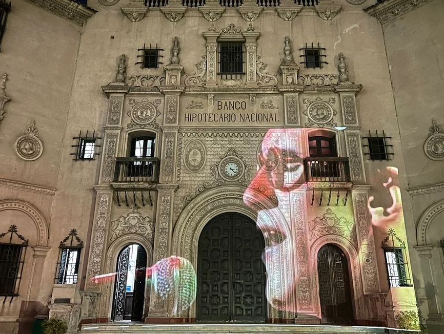 Anoche, el edificio de la Cultura, en la antesala de lo que sería la despedida del público, proyectó en su fachada imágenes de Cantero en el marco de los homenajes al líder de Los Enanitos Verdes en Mendoza.