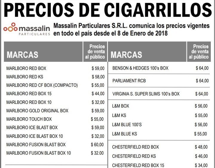 Después de que en San Juan se notara la falta de cigarrillos debido a que, según los kiosqueros, los mayoristas no les estaban enviando pedidos porque esperaban definiciones en materia impositiva que harían subir los precios, trascendió que la firma Massalin Particulares decidió implementar un aumento del 5% en promedio. El incremento, que según la empresa se debe a la suba en sus costos, se pondrá en marcha este lunes.