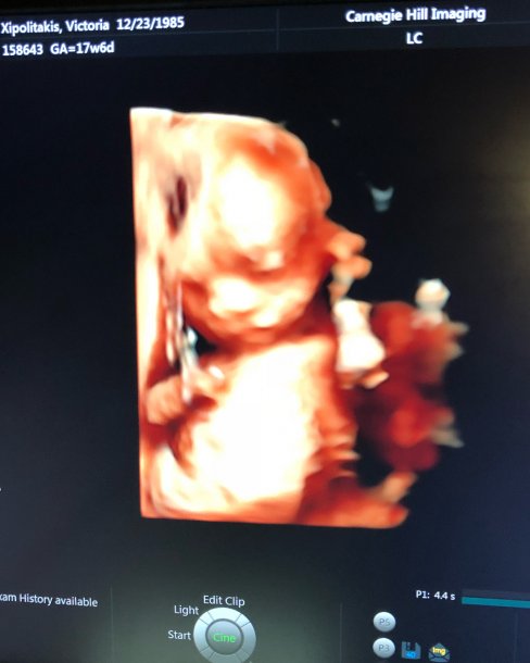 “Y con ustedes, les presento al milagro de cuatro meses: @salvadorurielok Hoy cumple 18 semanas, ya mide como un pimiento y me regalo estas imágenes; es la primera vez que le conozco la carita y no quería dejar de compartirlo con ustedes” #SeMeExplotaElCorazónDeFelicidad ¿Lo ven parecido a mí?”, escribió Vicky en su cuenta de Instagram.