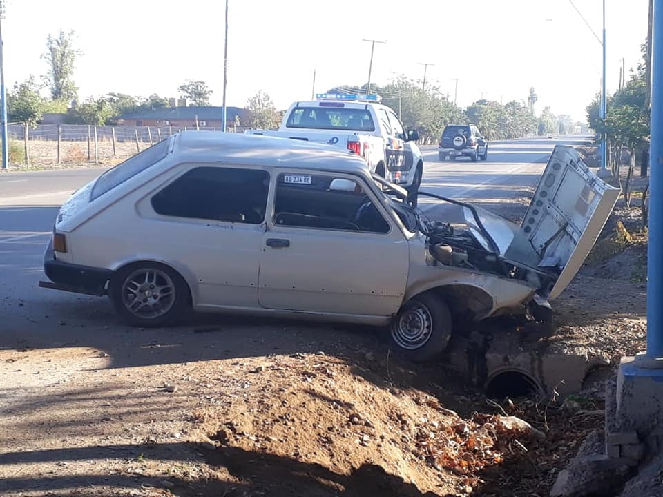 Desde la seccional 7ma informaron que el conductor viajaba sólo y resultó ileso, pese a que el auto quedó con toda su parte frontal destruida.