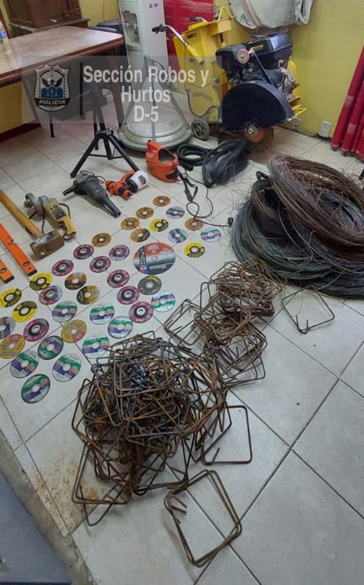 Además, secuestraron desde una costosa máquina cortadora de pavimento, amoladoras, rollos de alambre y otros elementos para construcción de gran valor.