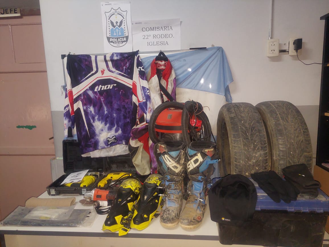 Una serie de robos con características similares ocurridos en Iglesia llamó la atención de la Policía que, al investigar, descubrió que los delitos eran cometidos por una banda que robaba diversos elementos, los escondía en un campo y luego los vendía en otras zonas del departamento o en departamentos vecinos. Ante la situación, realizaron una serie de allanamientos que terminaron con cuatro personas detenidas y elementos recuperados por un valor aproximado de $7.000.000.
