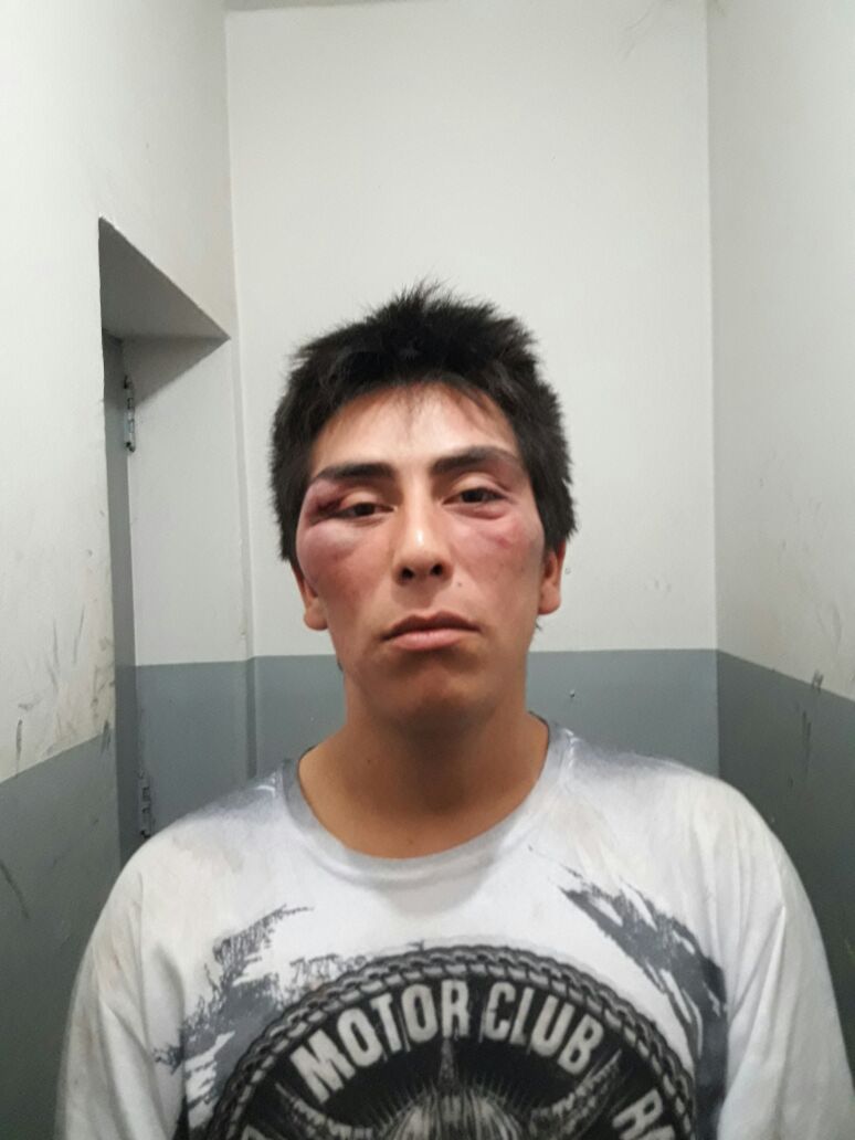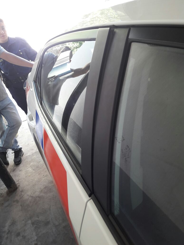 En eso es advertido del hecho personal de Comisaría 2da – Castiglione Franco y Leites Yamila -, quienes a los pocos minutos se hacen presente en el lugar; al lograr reducir al sujeto, este es ingresado al móvil policial y en el camino de regreso a la comisaría, el detenido comienza a patear con gran fuerza la puerta trasera derecha del móvil, logrando descuadrar la misma.
