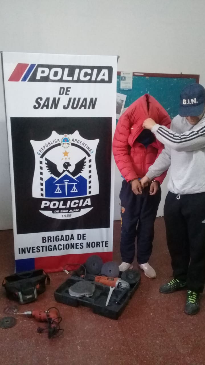 El último de los casos, y quizás el que más dinero involucró, fue el robo maquinaria de una fábrica de mosaicos en Chimbas. Los ladrones hicieron un boquete en el techo de machimbre de la edificación que tiene lugar en calle Maradona casi 25 de Mayo. Una vez adentro, sustrajeron varias máquinas y herramientas, y esa fue la postal que encontró la mañana del 21 de este mes, el dueño del lugar. Luego de la denuncia y tras las investigaciones de los pesquisas de la Unidad Regional Noroeste, el culpable: “Pata de lana” González fue encontrado en su casa, en el Loteo Santa Isabel (Chimbas). El delincuente de 19 años fue detenido y la maquinaria encontrada.
