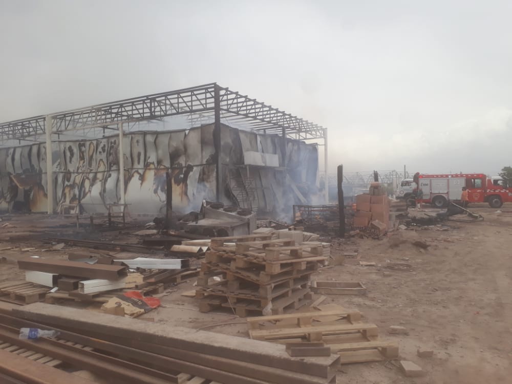 A la espera de las pericias de rigor, por ahora la hipótesis más firme de bomberos es que un cortocircuito fue el que originó el fuego que luego avanzó de forma arrasadora. Una cámara frigorífica montada en una enorme nave industrial quedó totalmente destruida, se consumió todo lo que había adentro –grandes volúmenes de fiambres, la mayoría- y dañó severamente la estructura metálica, que será evaluada por técnicos si puede resistir o debe ser construida a nuevo.