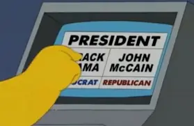 Este capítulo de 2008 ve a Homero intentando votar por Obama en las elecciones presidenciales pero la máquina cambia su voto constantemente. Cuatro años después, se reportó que una máquina en Pensilvania se tuvo que retirar porque cambiaba los votos de Barack Obama a votos de su rival republicano Mitt Romney.