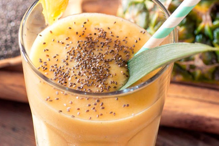 Ingredientes: 1 taza de ananá picada, 1 banana congelada, 1 taza de hielo y 1/2 taza de agua.