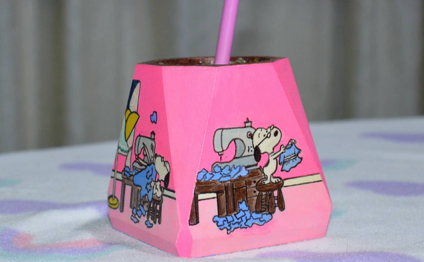 Los dibujos pedidos para los mates son diversos o bien quedan a consideración de la creatividad de la autora como por ejemplo una secuencia de Snoopy entre telas y máquina de coser creado para una modista. Tampoco ha faltado una serie de perritos salchicha para agasajar a una fanática de estos animalitos, entre otras opciones.