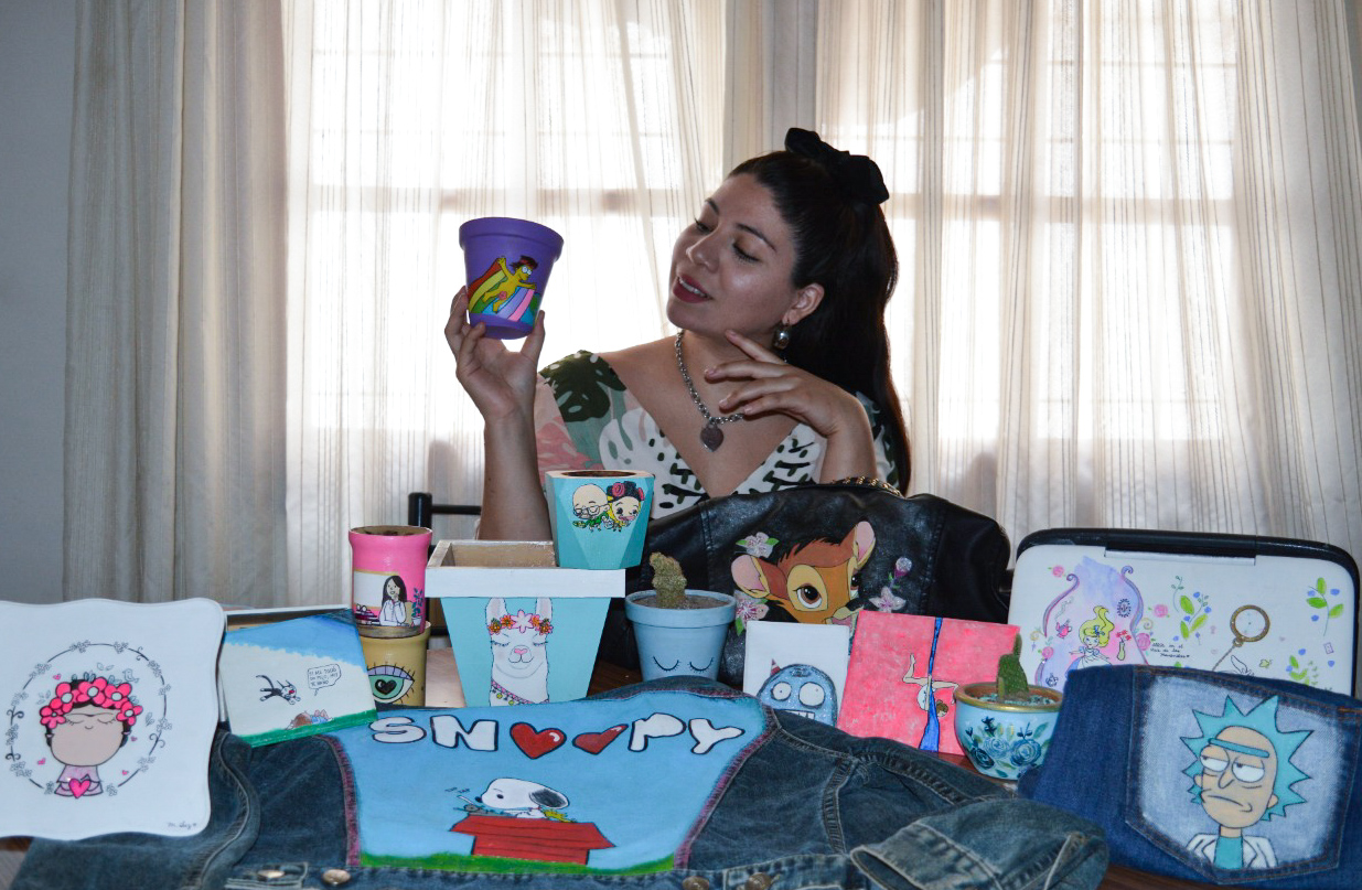 "Empecé a pintar por hobby, sobre todo para ocupar la cabeza en algo porque la cuarentena se hizo muy extensa. Antes, y durante mucho tiempo, lo había hecho como terapia porque me gusta y me hace sentir bien. Luego retomé la idea y empecé a vender para comprar más productos y así seguir pintando. Prefiero lo personalizado, preguntar al cliente qué le gusta, qué quiere y hacerlo exclusivo para esa persona, a la par también tengo mucho de lo que me gusta a mí y la gente los elige también", cuenta Maru.