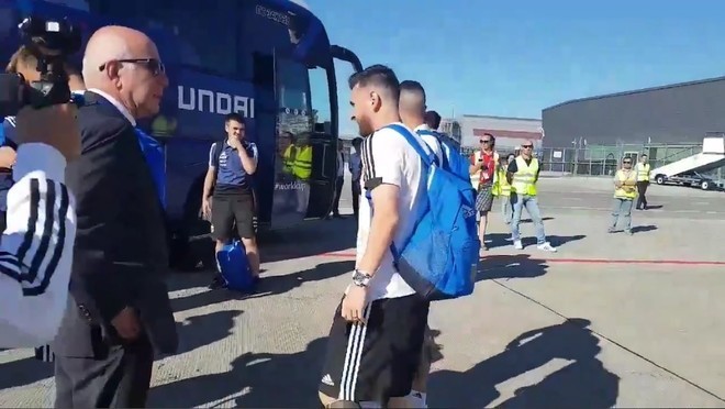 Los jugadores llegaron a la ciudad del suroeste de Rusia, a orillas de los ríos Volga y Kazanka, a las 11 de la Argentina (las 18 en Rusia). El equipo arribó al hotel en un micro que lo trasladó desde el aeropuerto de internacional de la ciudad.