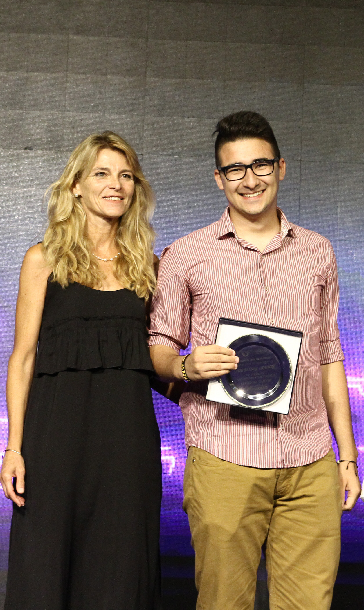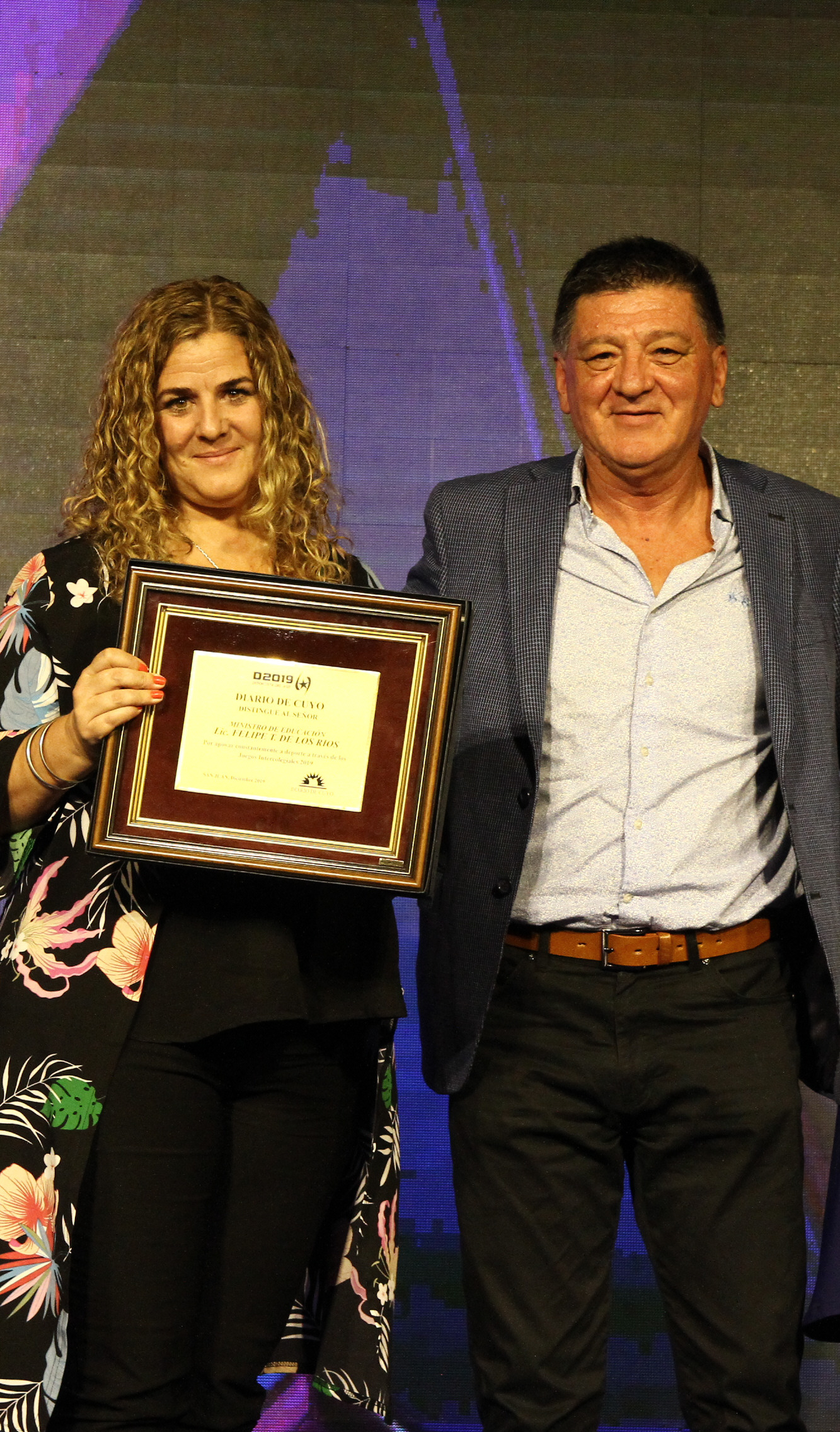 Roman Hermann recibió su distinción de Virginia Montes, gerente de Sistemas de DIARIO DE CUYO.