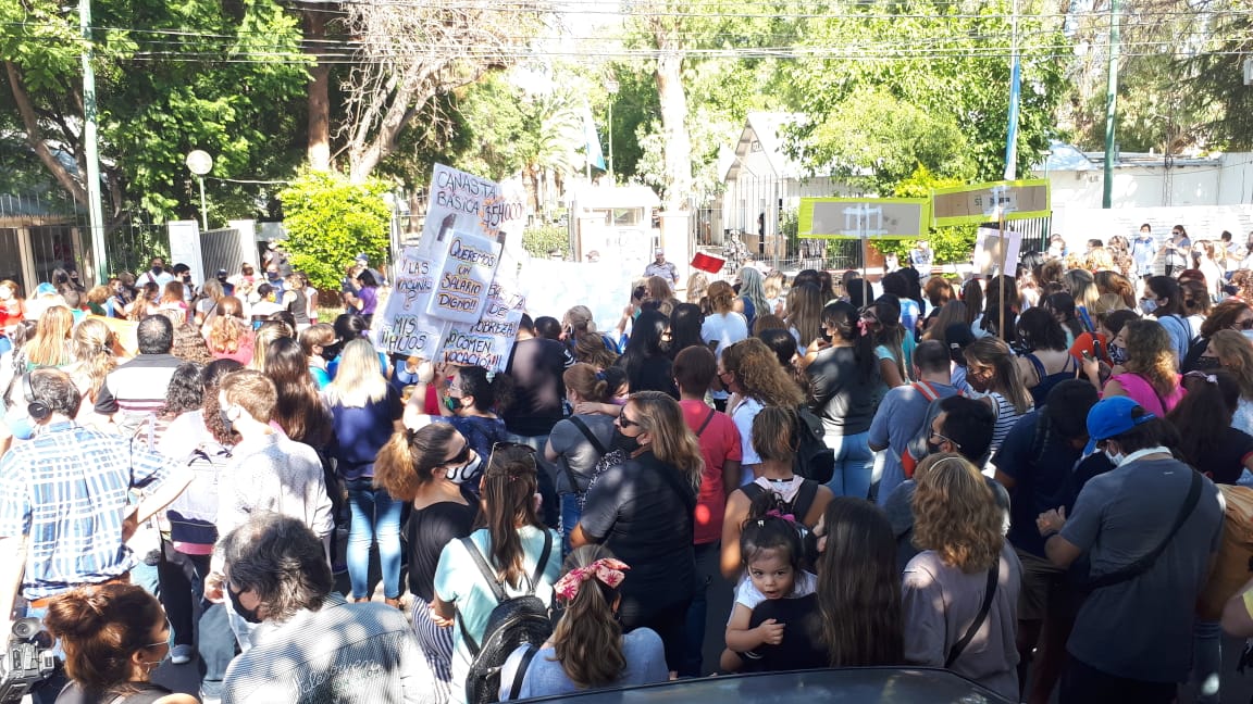 Con varias pancartas haciendo alusión fundamentalmente al tema salarial -"Hoy queremos un sueldo digno, mañana marcharemos por un justo" o "Mis hijos no comen vocación"-, cientos de maestros y profesores gritaban a viva voz frases en contra de las autoridades del Ejecutivo y las gremiales.
