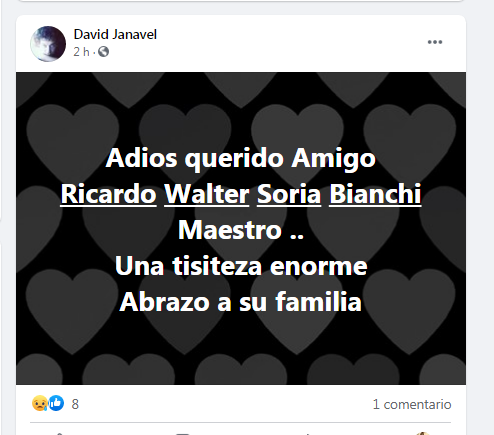 Hace tiempo estaba internado y este sábado murió, dejando un gran legado musical. En su trayectoria, fue líder del grupo 5ta Fase e integrante del grupo Ariel. En los últimos años, se dedicó a enseñar su conocimiento en la Escuela Municipal de Arte de Capital.