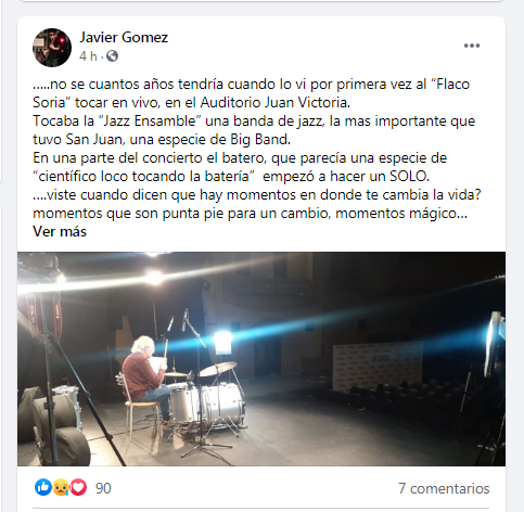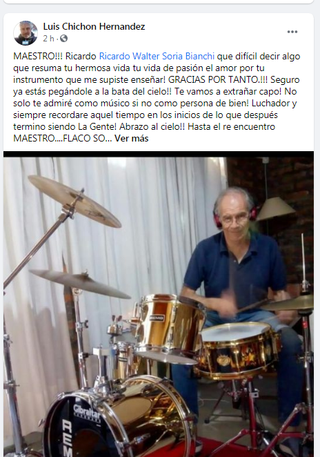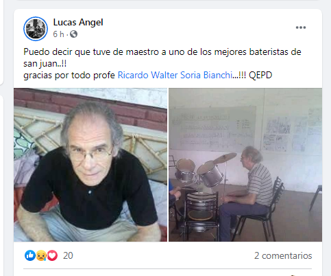Ricardo Soria marcó la historia de la música sanjuanina con todo lo que brindó en los años 50 cuando promovió el rock en la provincia. Por eso es que las redes se llenaron de mensajes emotivos despidiendo al reconocido baterista, quien falleció a los 74 años.