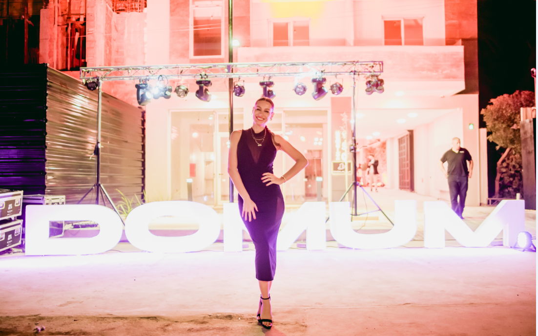 Luces led multicolor, proyectores, una puesta sonora con ambientación de jazz, coctel con vino fino y tabla de picada para degustar. El escenario, las copas y los invitados e invitadas, la mesa servida. Faltaba ella, la figura central de una noche inaugural y auspiciosa para celebrar la apertura del complejo de departamentos de la firma Domum.