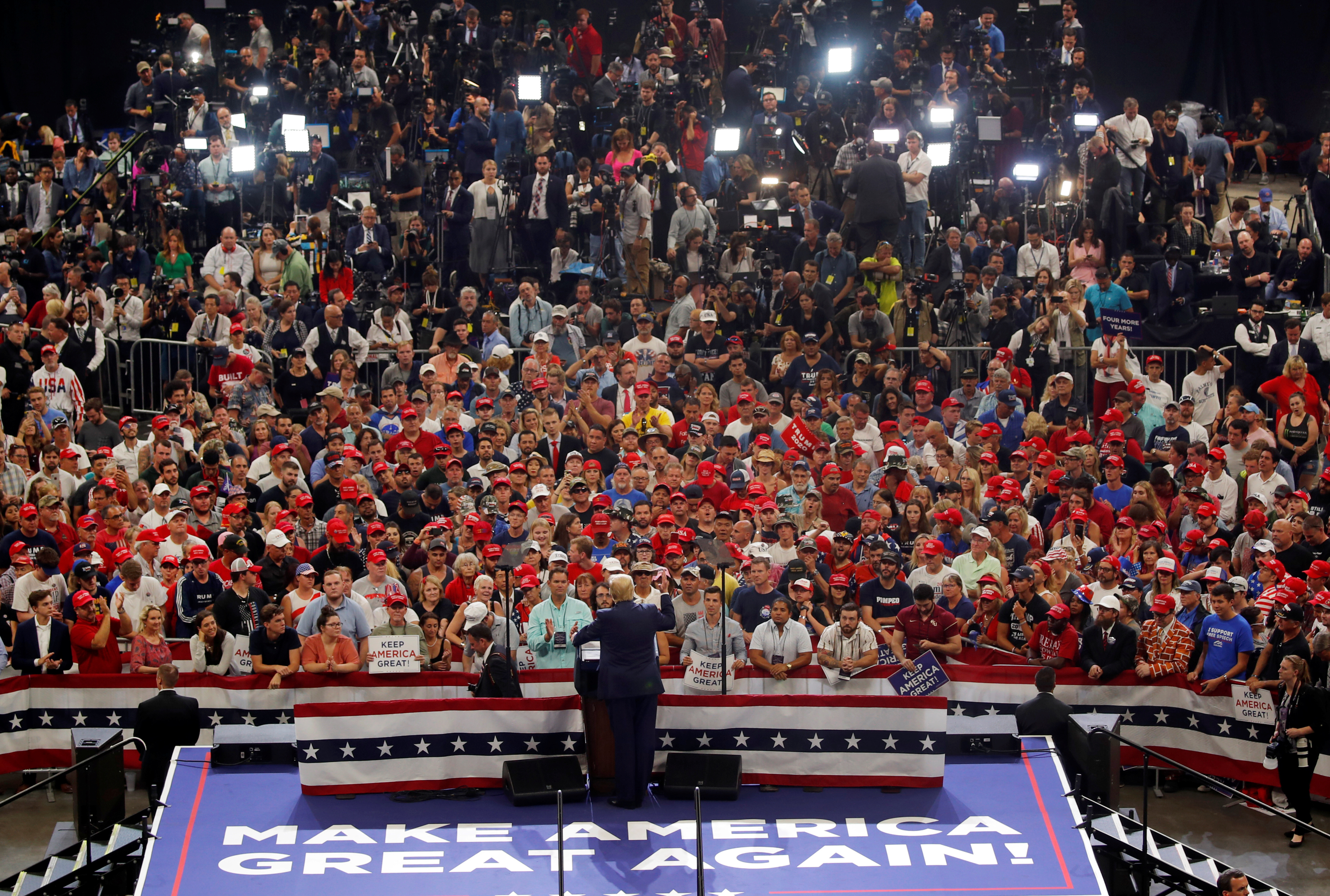 Trump recurrió a su estilo de confrontación: los demócratas habían ido contra él, sus negocios y su familia, pero en realidad habían ido contra el pueblo estadounidense. Con pausas para que el público abucheara o celebrara ("¡CNN es una porquería!", "¡Estados Unidos, Estados Unidos!"), insistió: "Esta elección no es solo un veredicto sobre lo bien que nos ha ido, sino sobre aquellos que han intentado socavar nuestra democracia".