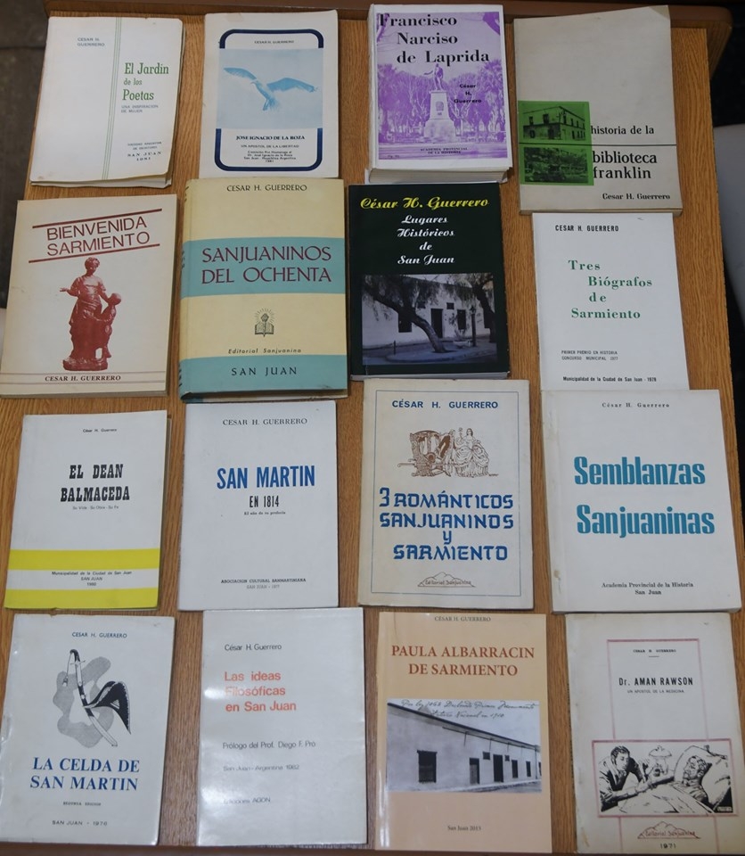 Una forma de contribuir a la expansión de la cultura sanjuanina es la buena lectura. Por tal motivo, la señora Sara Paz Guerrero, museóloga Mafalda Guerrero y César Francisco Guerrero, hijos del investigador, historiador, genealogista, biógrafo y escritor César H. Guerrero, han expresado su voluntad de donar los libros escritos por su padre, a la Biblioteca Sarmiento Legislador. Los títulos de las obras son "Bienvenida Sarmiento”, "Paula Albarracín de Sarmiento”, "Francisco Narciso de Laprida”, "Dr. Aman Rawson un apóstol de la medicina” "San Martín en 1814 el año de su profecía”, "Las ideas filosóficas en San Juan”, "José Ignacio de la Roza un apóstol de la libertad”, "La Celda de San Martín”, "Lugares históricos de San Juan”, "El jardín de los poetas”, "Tres biógrafos de Sarmiento”, "Semblanzas Sanjuaninas”, "Sanjuaninos del Ochenta”, "El Dean Balmaceda”, "Tres Románticos sanjuaninos” y "Sarmiento, Historia de la Biblioteca Franklin”. Mientras se efectiviza formalmente este acto administrativo, fueron invitados a una tarde literaria, que se llevó a cabo el pasado lunes 21 de octubre, como parte de las actividades de lectura del Taller Literario Eutopía.