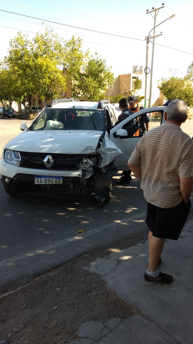 Chapas abolladas, plásticos dispersos en el pavimento y airbags activados, ese fue el saldo de un nuevo accidente de tránsito en la provincia que, por fortuna, no arrojó heridos. Ocurrió pasadas las 15:45 en avenida Ig. de la Roza pasando calle Meglioli, en Rivadavia.