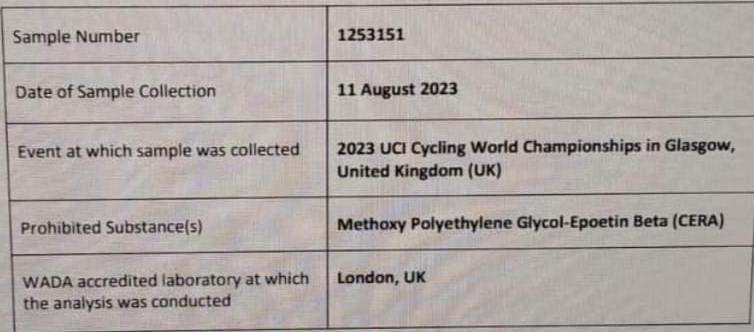 Es que el texto revela que el pedalero bonaerense utilizó una droga no permitida en el Mundial de Ciclismo que se realizó en Glasgow 2023. Por ahora fue suspendido hasta que se tomen las medidas de fondo.