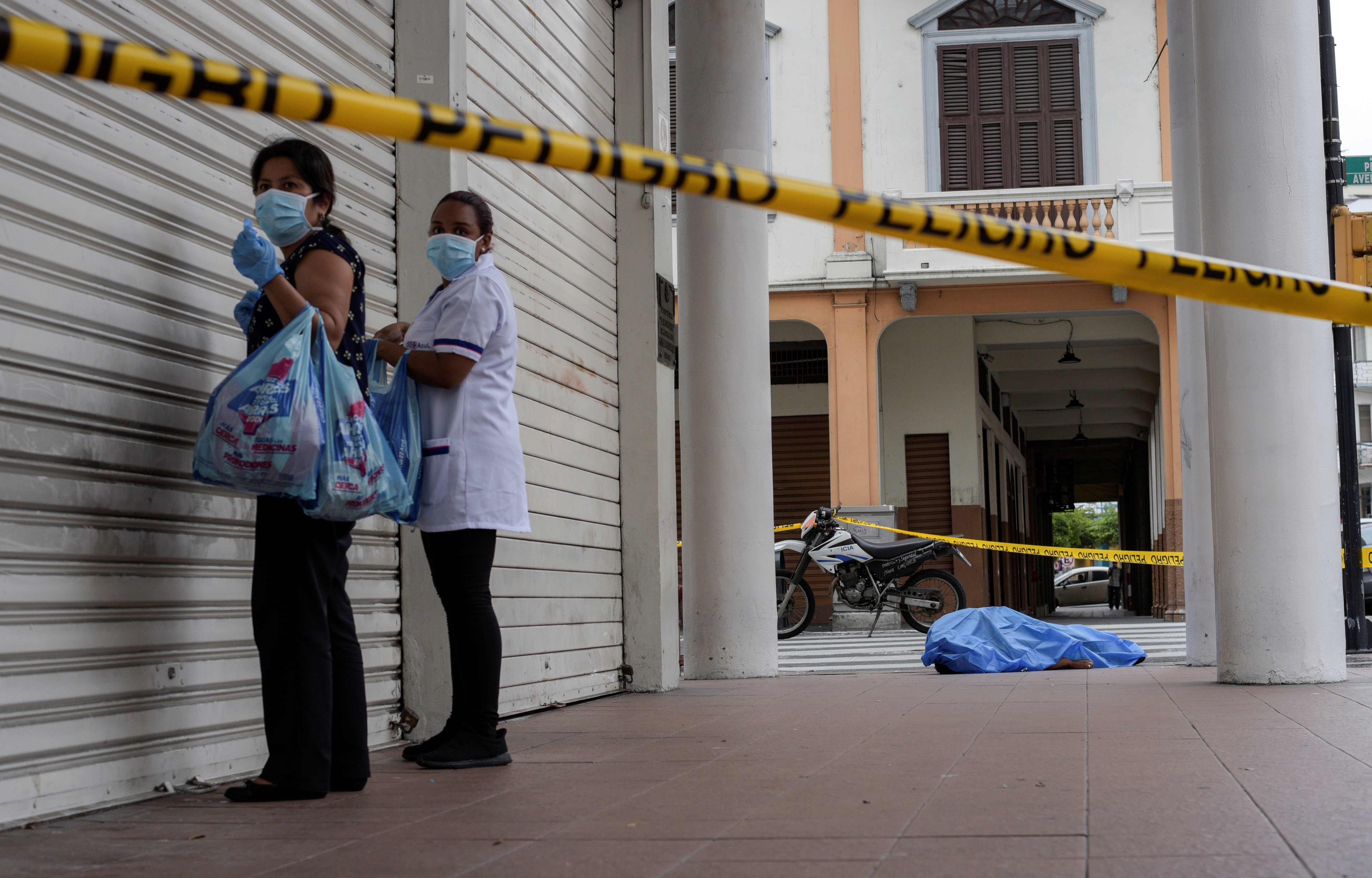 Un testigo de Reuters vio el lunes el cuerpo de un hombre en una acera, debajo de una sábana azul cerca de una zona turística en el centro de Guayaquil. Escenas similares se reportaron en varios puntos de aquella ciudad.