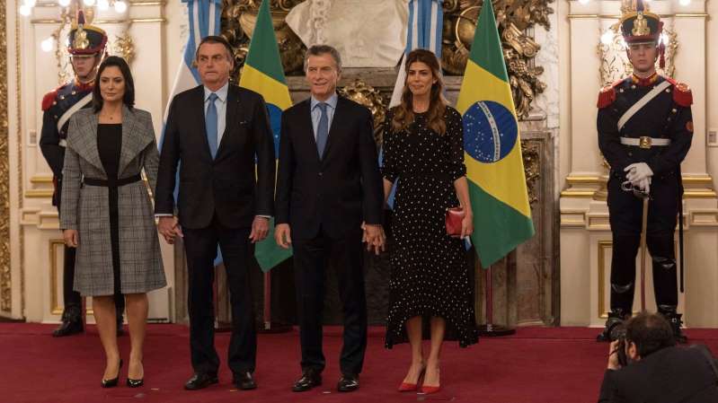 Para los beauty looks, las primeras damas optaron por peinados similares. Semirecogidos. Awada, la media cola con ondas, mientras que Bolsonaro elevó su flequilló como jopo y lacio a los costados. El maquillaje de ambas fue sobrio y resaltaron los ojos con abundante máscara de pestañas, sin la elección de un labial llamativo. Correcto para un evento diurno.